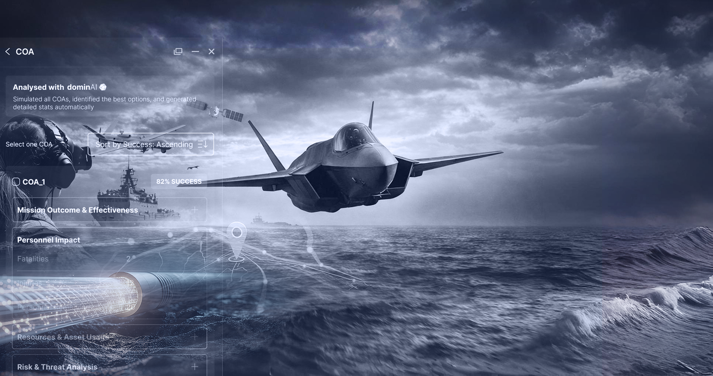 Transform Mission Planning by embedding AI and simulation into C2 systems with superior Course of Action optionality and analysis.